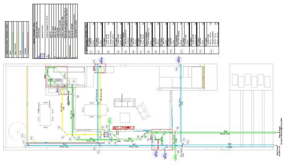 Todas as soluções foram desenvolvidas conforme as normas técnicas, buscando funcionalidade, eficiência e facilidade de manutenção, além de prever flexibilidades para futuras ampliações ou adaptações do sistema.