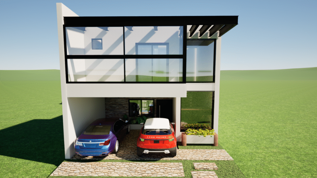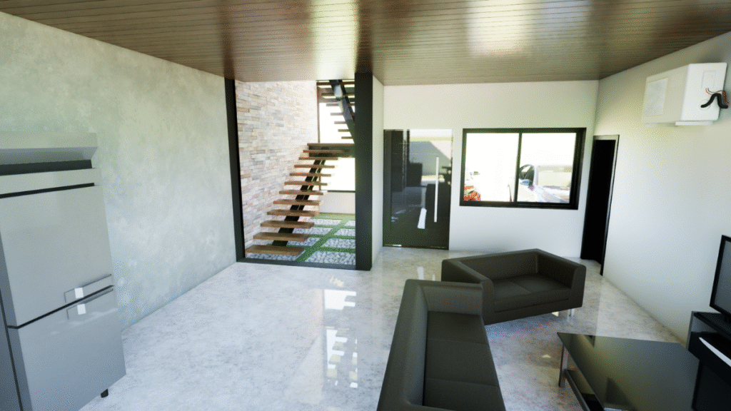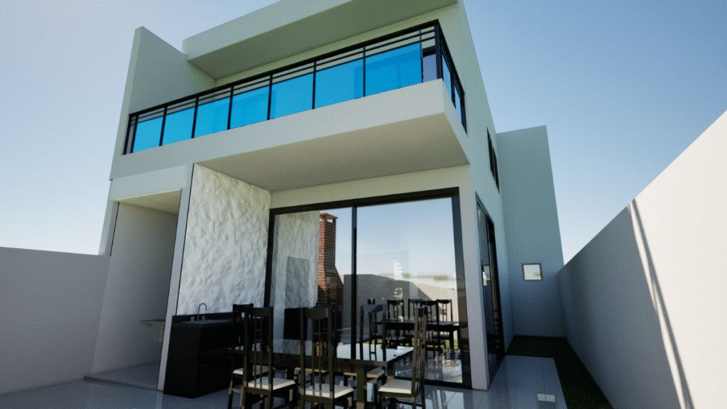 Este serviço envolveu a modelagem 3D e renderização de um sobrado com dois pavimentos, projetado para uma residência de alto padrão. A proposta buscou representar com fidelidade: